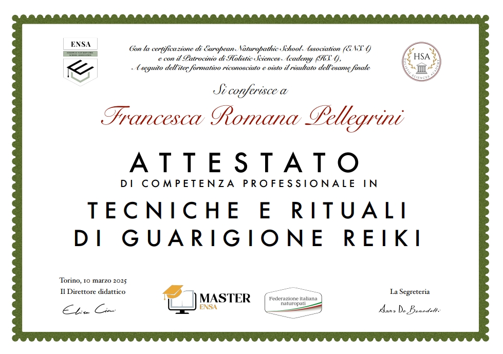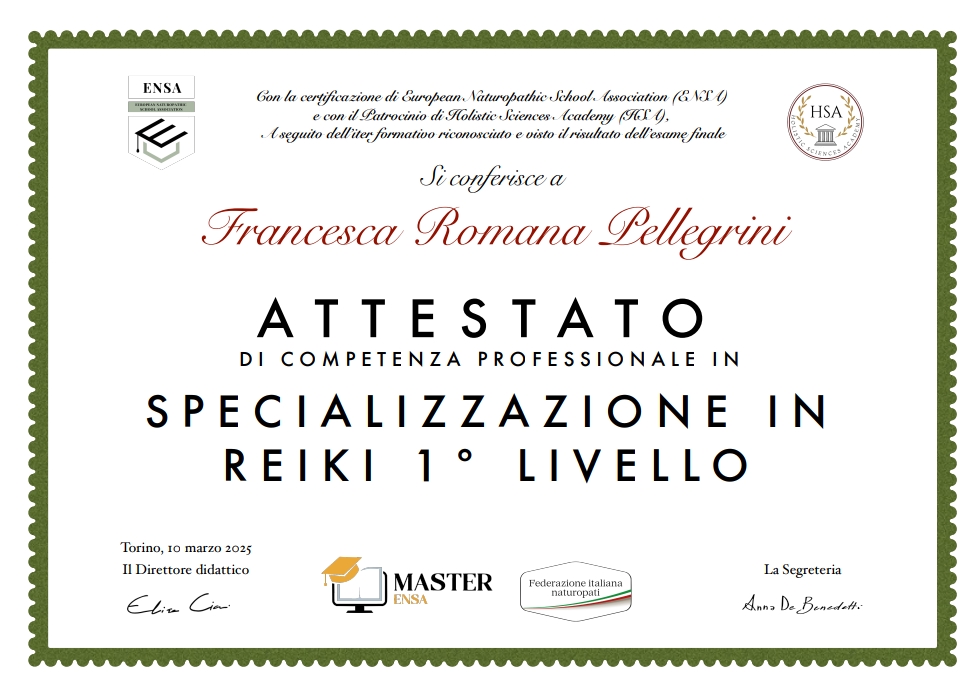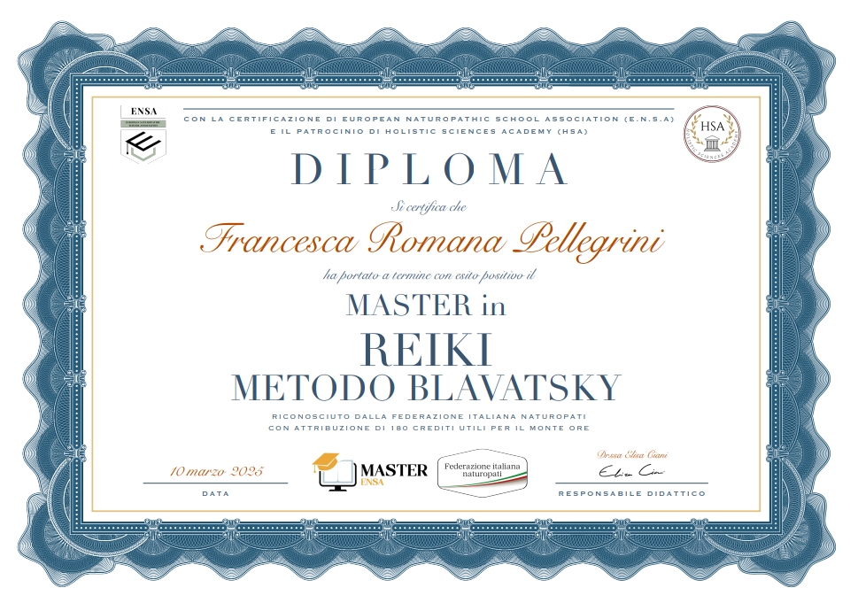 Ho ricevuto la qualifica esoterica di Master Reiki secondo il Metodo Blavatsky.